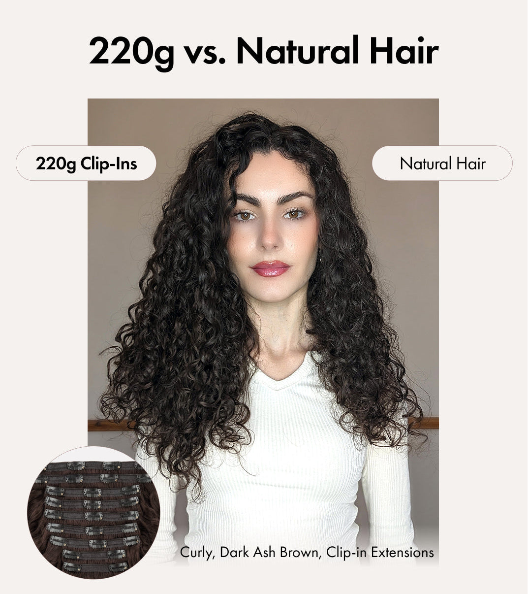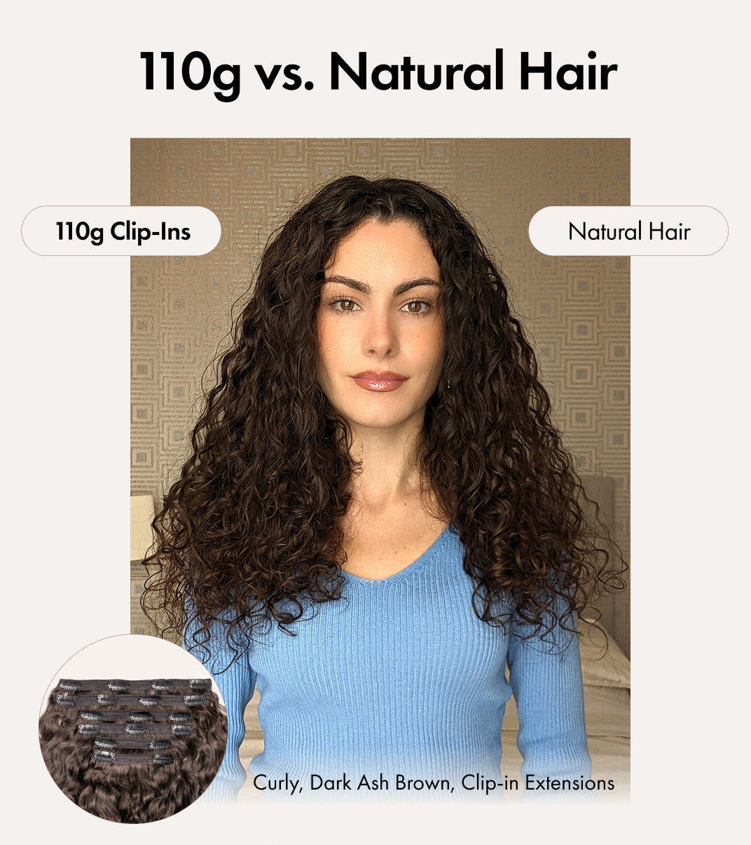 These easy-to-use Spiral clip-ins are perfect for those with a loose wave texture (like a 2c) or soft curls (like a 3A).